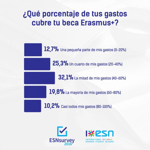 Migración estudiantil en Europa (¿quién va a cada sitio?): en este apartado, las conclusiones apuntan a una percepción del beneficio que proporciona o proporcionaría una estancia más larga en términos de perspectivas laborales, mejora del idioma e integración local. Asimismo, se observa una gran flexibilidad en cuanto a la institución de acogida, la cual apenas influye en el nivel general de satisfacción de los estudiantes encuestados. Por otra parte, se insta a una mejora en el importe económico de la beca, pues solo un 10,2% de los encuestados afirmó que la beca fue suficiente para cubrir el 80% de sus gastos o más. Por último, y como norma general, se apunta a que la movilidad favorece la movilidad, en el sentido de que un 70% de los encuestados sobre ello se muestran interesados en la posibilidad de realizar un máster en el extranjero, aunque se perciben las limitaciones económicas para ello.