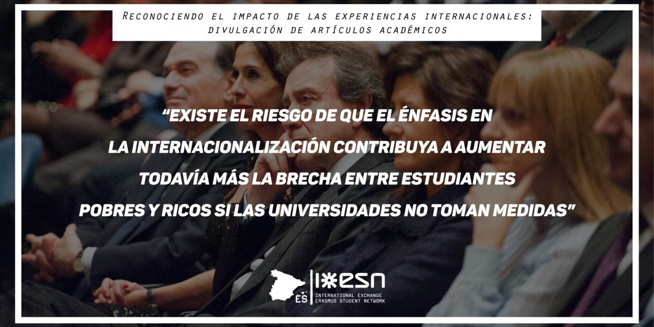 La propensión y la capacidad para participar en experiencias internacionales también están muy relacionadas. Los padres de un estudiante de clase media, que conocen los beneficios de la internacionalización y tienen capacidad económica para sufragar los estudios de sus hijos en el extranjero no dudarán en mandarlo de Erasmus. Esto raramente ocurrirá en una familia de clase trabajadora.